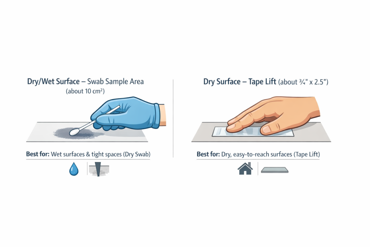 When collecting surface samples for mold testing, not all sampling methods are created equal. Each method has specific strengths and limitations, and you may choose differently depending on your priorities and the conditions on site.